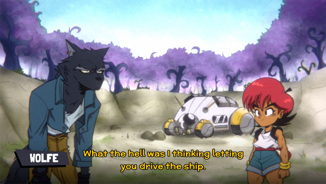 Playing as Ringo, a sassy young martial artist searching for her brother, and Wolfe, a mysterious scoundrel, players embark on a quest across the galaxy to find pieces of the fabled Wanderstar Map. The narrative is structured as a series of ten “episodes,” complete with episode titles and a pace that perfectly mimics Saturday morning cartoons. This episodic format works wonderfully on the Switch, offering flavorful, digestible chunks of story that make it perfect for on-the-go play.