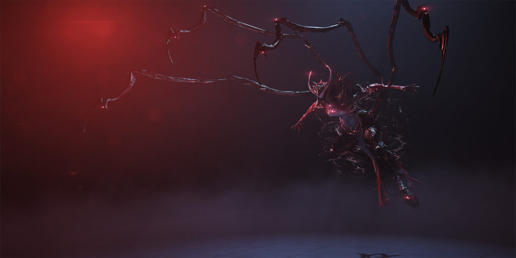 Damage and Summoning: Oraxia’s damage scales effectively through multiple avenues. Her primary Toxin damage from Mercy’s Kiss, Widow’s Brood, and Silken Stride allows her to chip away at enemy defenses. The Scuttlers summoned by Widow’s Brood add a persistent source of damage and distraction, particularly potent when built for summoner utility. During Silken Stride, the added Toxin damage to ranged weapons transforms her into a potent gun platform, rewarding aggressive shooting and further spreading Toxin procs. The bursting Toxin on enemy kills during Silken Stride creates a satisfying chain reaction of destruction.
