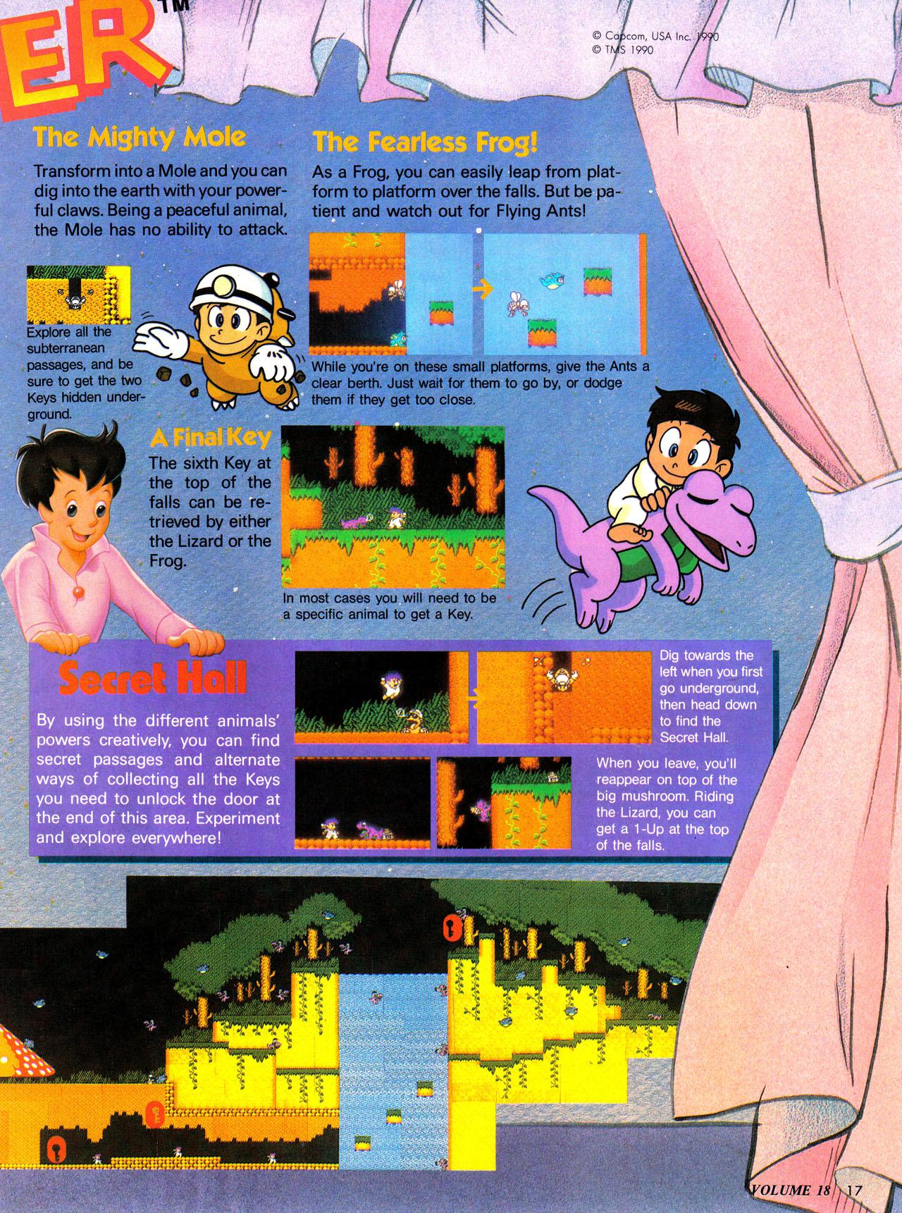 In terms of gameplay mechanics, Little Nemo famously ditched traditional combat for a “creature-swapping” system. Nemo cannot defeat enemies on his own; instead, he tosses candy to specific animals to put them to sleep, allowing him to “wear” them. Each creature—whether it be a frog that jumps high, a mole that digs, or a lizard that scales walls—is essential for navigating the level’s verticality and finding the hidden keys required to progress. This mechanic turned the game into a series of environmental puzzles, requiring players to think critically about which “friend” was necessary to overcome specific obstacles.