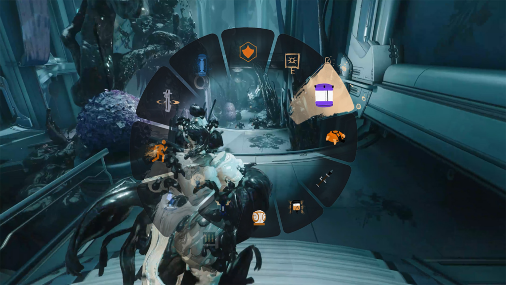 The Shadowgraph ability opens Follie’s sketchbook to select one of fourteen distinct environmental objects. Tap-casting summons the chosen ink-based object, such as Explosive Barrels, Arc Traps, or even Orokin Death Orbs. These summons scale with enemy levels and can even provide utility like Life Support Capsules or Power Cells. Players can even customize the icons for these objects in the Arsenal using a layering system of brush strokes. This makes Follie a unique Swiss-army-knife frame capable of adapting to any mission type.